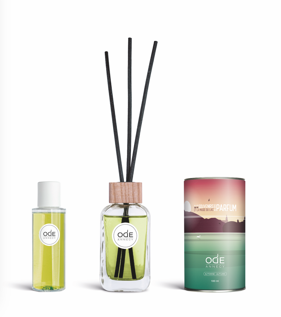 Ode Annecy feiert den Herbst mit einem Raumduft mit holzigen Facetten für ein Gefühl von Weichheit, einem sensorischen Marker,